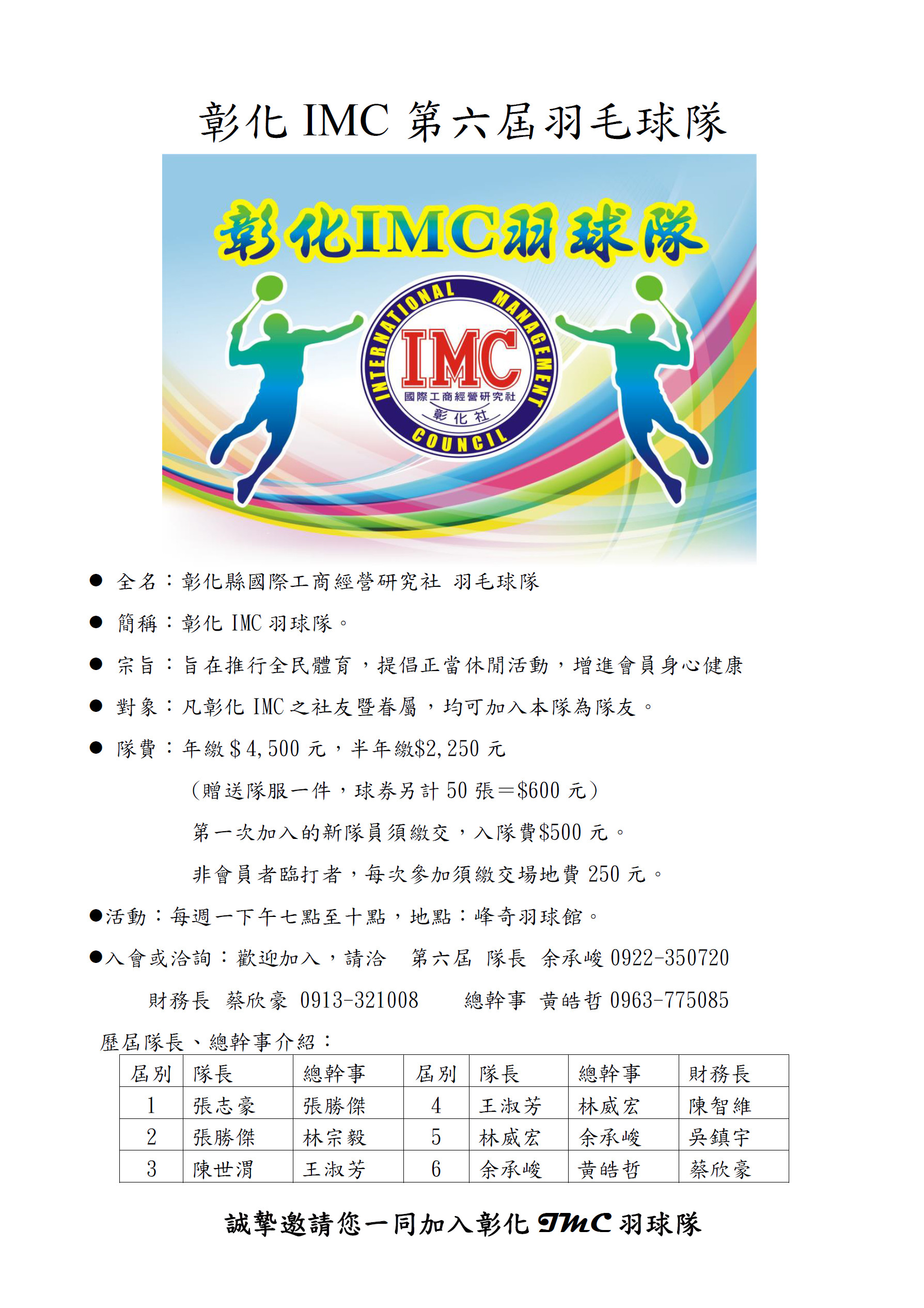彰化IMC第六屆羽毛球隊